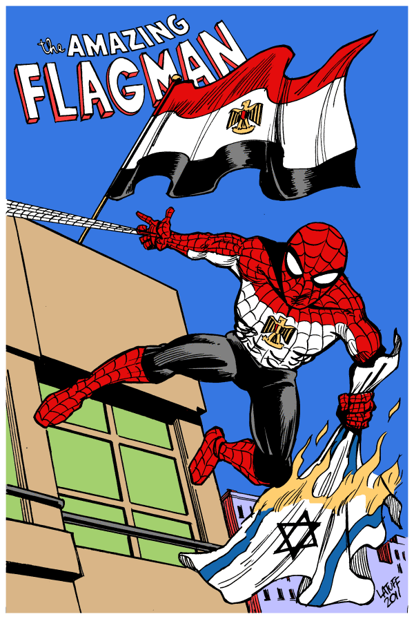 The protest produced a new popular hero, Ahmad al-Shehat – the so-called #Flagman – who scaled the 22-story building in which the embassy is located and replaced the Israeli flag with Egypt’s.