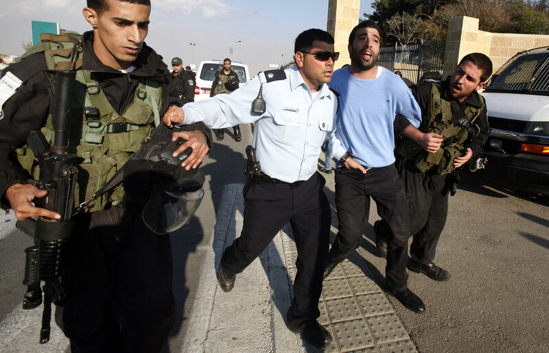 Israeli forces arrest a Palestinian at Hebrew University during a protest against Israel’s attack on Gaza, 20 November 2012.