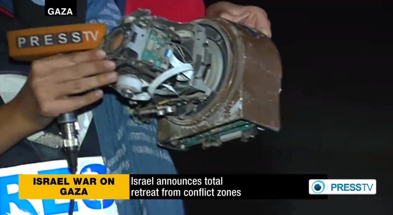 Press TV showed this missile part found in Gaza that includes a camera the reporter said was marked as manufactured by Sony.