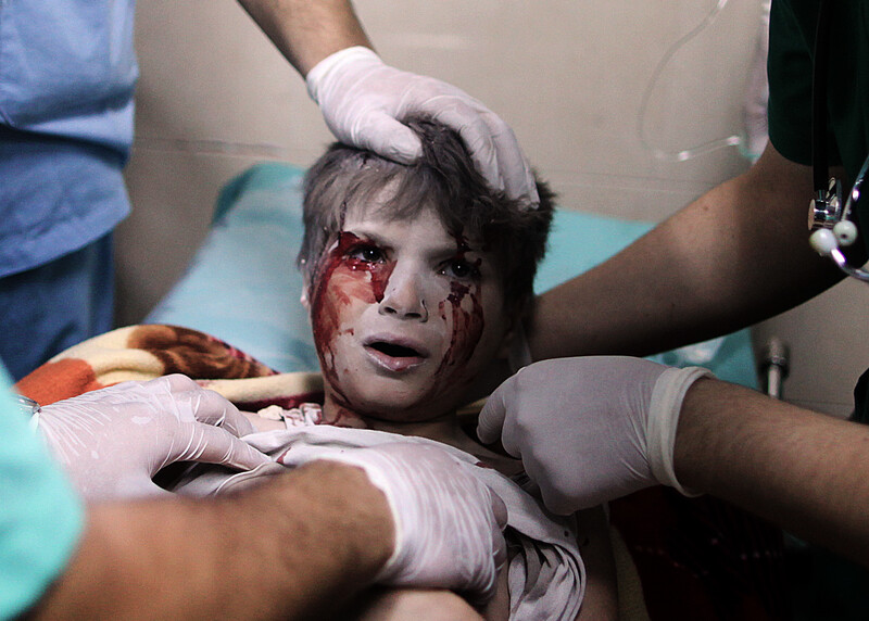 A Palestinian boy wounded by Israeli shelling, receives treatment at al-Shifa hospital in Gaza City, 20 July. Ali Jadallah APA images