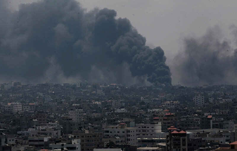 Smoke rises after an Israeli missile hit the Shujaiya neighborhood in eastern Gaza City, 20 July.   Ashraf Amra APA images