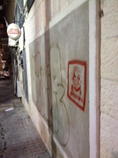 painting non-violent Grafitti to West-Jerusalem walls, it is to jewish invadors