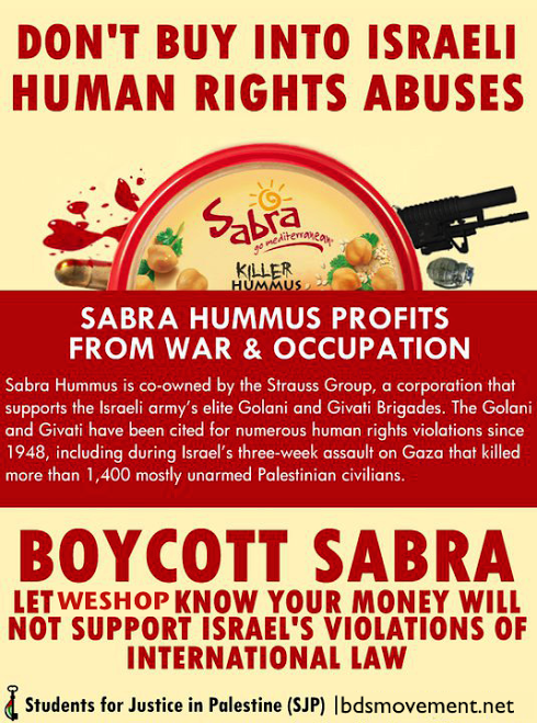 Sabra is a frequent target for boycott, divestment, and sanctions (BDS) campaigns because it is partially owned by the Israeli company Strauss Foods, which actively supports the Golani brigade, an “elite” unit in the Israeli army which is responsible for grave human rights abuses.