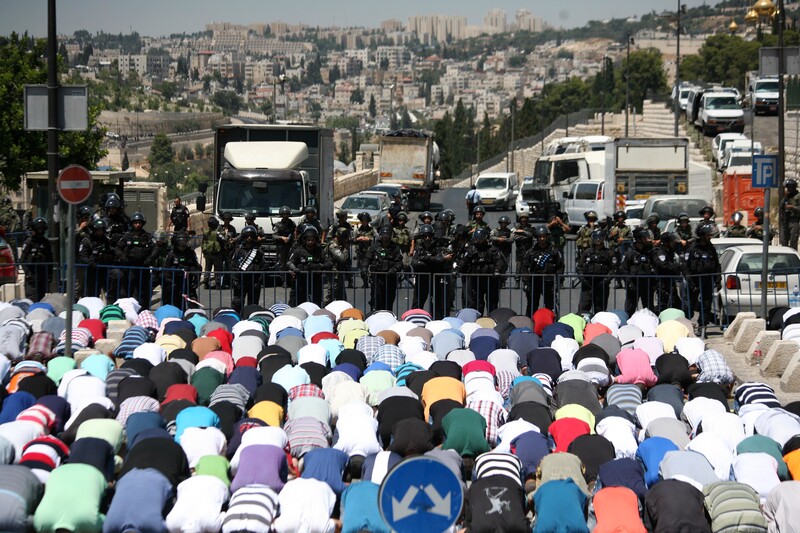 Palestinians in Jerusalem were compelled to pray in the street Friday after Israeli forces denied them entry to the Old City.