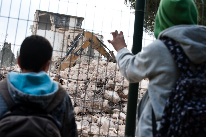 Caterpillar machinery is used by Israeli forces to destroy the Shepherd Hotel in occupied East Jerusalem to make way for Israeli settlement colonies, January 2011.