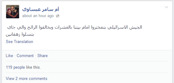 Shortly before 7:00pm, Layla Issawi, his mother, posted a Facebook status: “Tens of Israeli army officers are in front of our house passing out tickets to everyone passing by. They must be bored.”