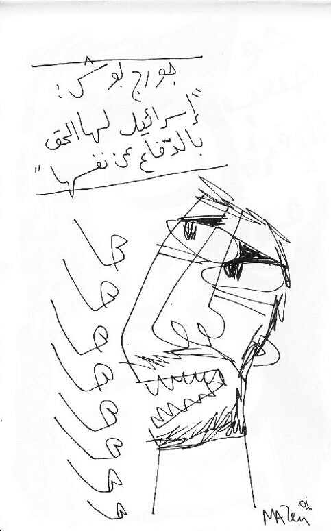 George Bush: “Israel has the right to defend itself” … ha ha ha ha ha ha ha (Mazen Kerbaj)