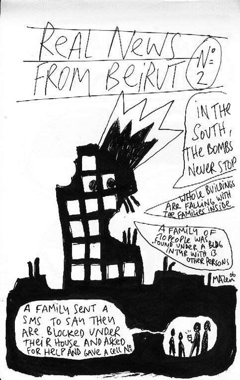Beirut 16 July 06, 2:10 am … “How can I show sound in a drawing (Mazen Kerbaj)