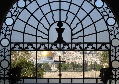 A view of the Old City of Jerusalem — with both the Haram a-Sharif and the Church of the Holy Sepulchre visible — from Dominus Flevit church on the Mount of Olives (Timothy Seidel)