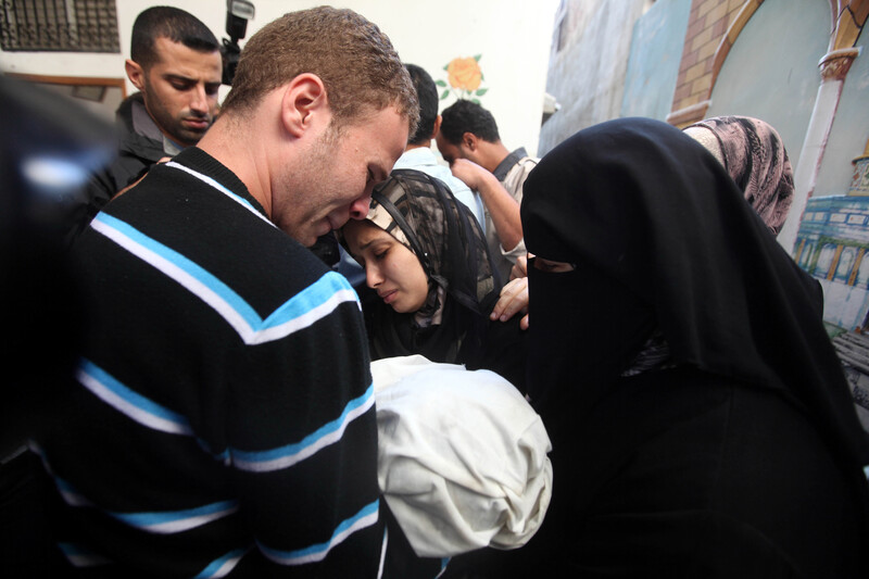 BBC Arabic picture editor Jihad Masharawi and his wife Ahlam mourn during the funeral of their 11-month-old baby boy Omar, who was killed the previous day when an Israeli missile hit their Gaza City home, 15 November.