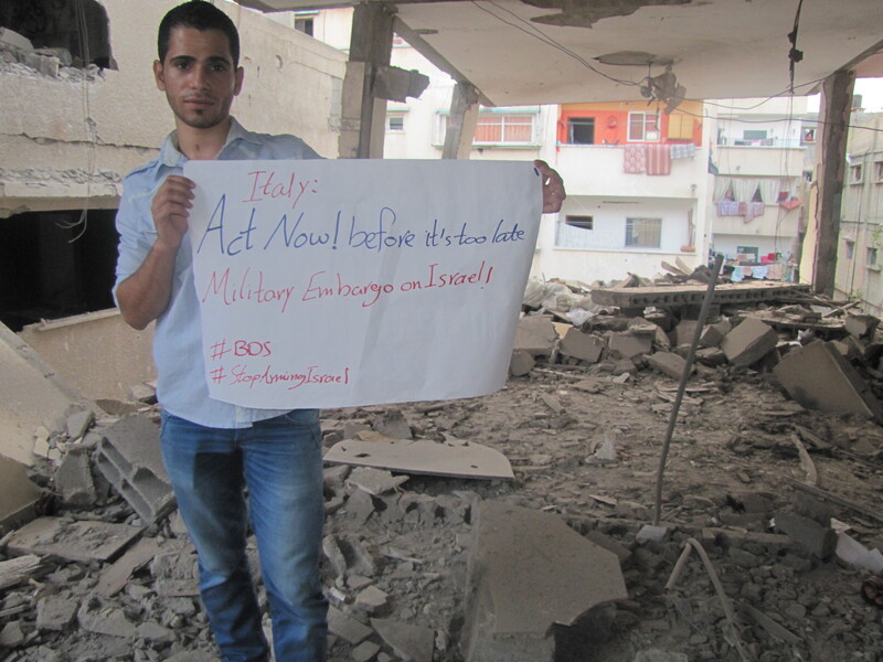 Palestinians in Gaza, standing in the rubble of destroyed homes, posted photographs appealing directly to Italy not to “train the pilots who bombs us.”