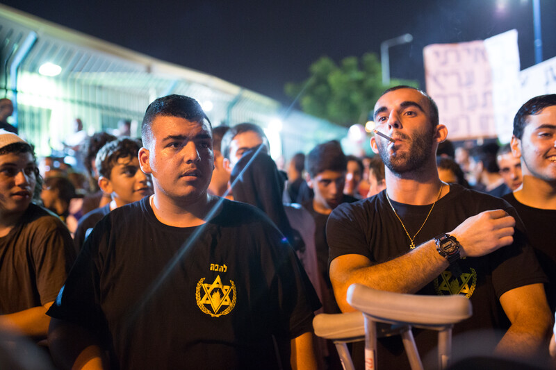 Members of the Israeli anti-miscegenation group Lehava protest against the marriage of a Palestinian man and an Israeli Jewish woman in Rishon Letzion, 17 August 2014.