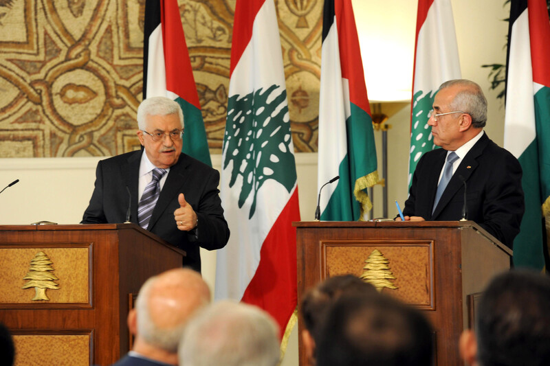 Palestinian Authority leader Mahmoud Abbas speaks during his joint press conference with Lebanese President Michel Suleiman in Beirut, 3 July. Abbas flew to Lebanon via Jordan as part of efforts to ensure that the Palestinian refugee camps will stay clear of the country’s growing Syria-related unrest.