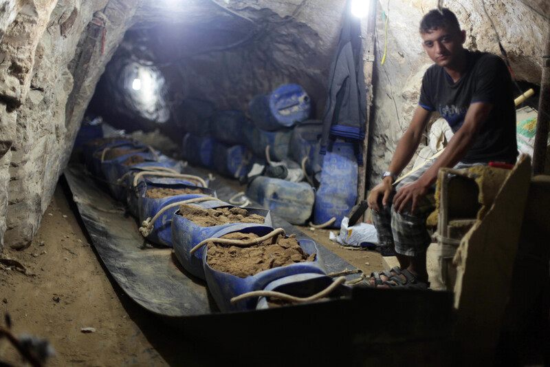 A Palestinian man works inside a smuggling tunnel connecting the Gaza Strip and Egypt in Rafah, southern Gaza Strip, 19 July. Since the toppling of Egypt’s president, Muhammad Morsi, the Egyptian military has blown up and bulldozed many of the hundreds of smuggling tunnels dug under the border with Gaza that serve as the major supply line for the enclave’s approximately 1.7 million residents.