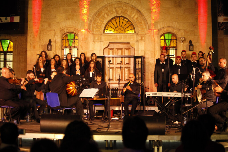 The Siraj Choir perform in honor of Sayed Darwish, considered the grandfather of Egyptian popular music, during the Jerusalem Festival 2013 at the Edward Said National Conservatory of Music, 1 July.
