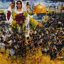 “I made around fifty pieces of various kinds in prison,” he said of his seven years in detention. “A lot of it had to do with Palestinian folklore, for example, farmers, embroidered Palestinian dresses and old Palestinian houses. Another kind was about the Palestinian struggle against the Israeli occupation, like the Palestinian flag, map, or fighter. The third kind was the emotional one, making art for my mother, wife, children, or family.”
