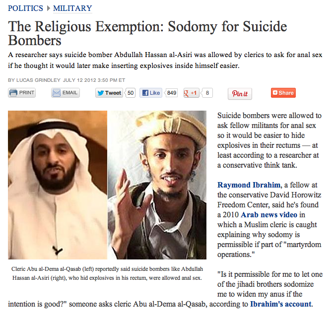 RE: "Sodomy for jihad? Venerable LGBT magazine The Advocate spreads vile Islamophobic hoax" ~ Benjamin Doherty