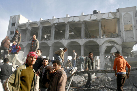That is one example of the killings at what Israel alleges were Hamas “terrorist” outposts. At dozens of locations, entire buildings were torn down, windows of homes were smashed and countless cars damaged. Under the rubble lay dozens of corpses. About 60 Israeli F-16 warplanes attacked up to 100 targets in Gaza today, mainly police stations and charities run by Hamas. One of the Israeli missiles landed in the sports field of the Islamic University of Gaza, home to more than 18,000 students.