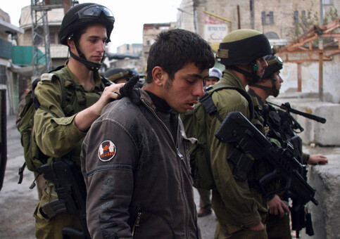 Israeli soldiers in the occupied West Bank city of Hebron arrest Palestinians suspected of throwing stones during a protest against Israel’s bombing of Gaza, 30 December 2008. (Mamoun Wazwaz/MaanImages)