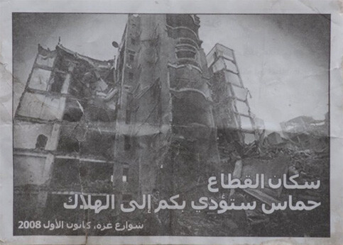 A flyer dropped on the Gaza Strip reads: “People of the Strip/ Hamas will lead you to destruction/ The streets of Gaza December 2008.” (Sameh A. Habeeb)