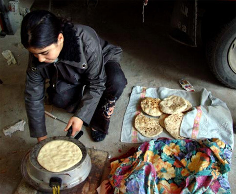 Bread is baked with a small electric stove. (Eva Bartlett)
