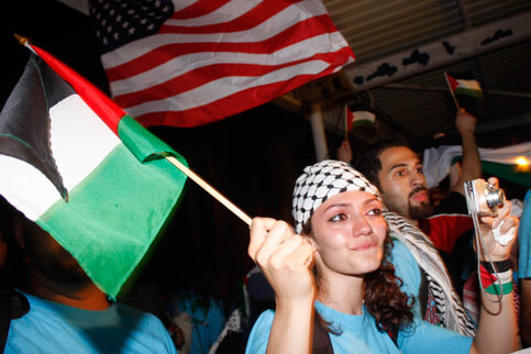 International activists from the Viva Palestina US delegation arrive into the Gaza Strip from Egypt, 15 July 2009. (Hatem Omar/MaanImages)