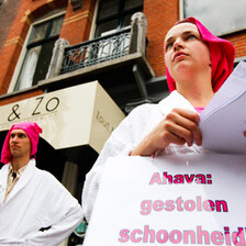 Last week a “bikini brigade” of Code Pink, the American anti-war movement, protested in the nation’s capitol near cosmetic stores with their bodies smeared with mud, underscoring the slogan that “Ahava is dirty business.” Meanwhile in France, on 17 July a group of 30 women women paid a visit to Sephora comestics shop on the Champs Élysées in Paris to protest the sale of Ahava products, calling on the public to support the protest by sending messages to Sephora.