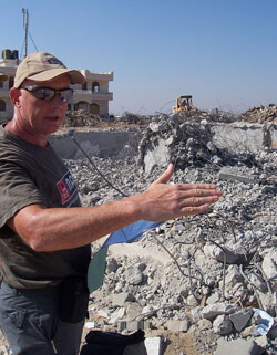 MAG director Mark Russell reviews a “high risk” UNDP rubble removal site in Jabaliya. (Erica Silverman/IRIN)