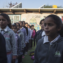 Eid Raeb is a coordinator between the Jabal camp and the European nongovernmental organizations (NGOs) that are its lifeblood. “Bedouin life is finished,” he declared without hesitation. “Sometimes when I look outside I imagine how it was before, but I know that life is over.” Eid is one of the founding members of the camp after they were displaced from their land that became Ma’ale Adumim, one of the fastest growing Israeli settlements. “After they built [Ma’ale Adumim] in 1979, they began to move us. At first very slowly, one family at a time. After 1993 and the Oslo agreements they built many houses and said they needed all the land.” The Oslo agreements placed them in Area C, under Israeli control. “At first when they told us to move here we refused, but the Israelis said they would use force. They promised us building permission, electricity, water and streets. When we came here there was nothing, just open land.”