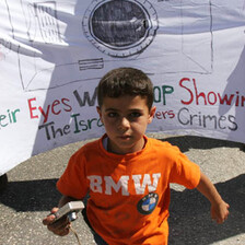 In 2005, we began our nonviolent demonstrations in Bilin against Israel’s wall in the occupied West Bank and the illegal settlements that have been built on our land. We practice nonviolent methods as a way of resisting, such as tying ourselves to our olive trees when they were due to be bulldozed and uprooted by the Israeli military. For the last five years, we have succeeded in sending our message to the whole world, to tell the people that Israel’s wall is not for security, but it is an apartheid wall built only to steal our land for the purpose of expanding illegal Israeli settlements.