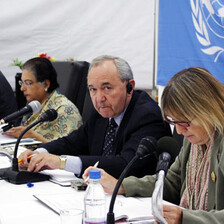UN Special Rapporteur Richard Falk holds a press conference on the final report of his mandate, 22 October 2010. (UN Photo)