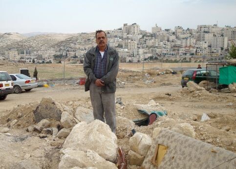Nayeem Sbatan stands amid the rubble of his commercial garage in al-Tur, occupied East Jerusalem, after it was demolished by Israeli authorities on 29 December 2010. (Erica Silverman/IRIN)