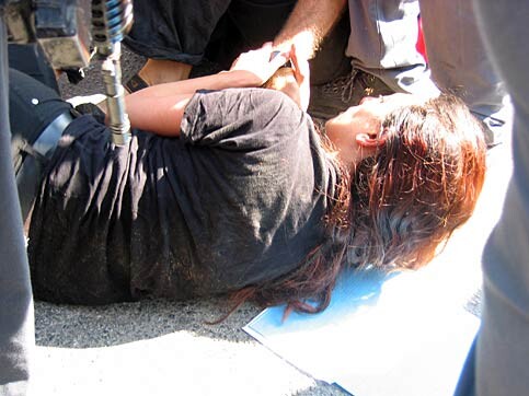 An Israeli protestor is arrested. (Rima Merriman)