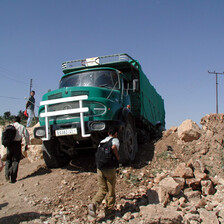 An Israeli bulldozer works to destroy the supporting structure of a shop in Barta’a Sharqiya. The heart of the commercial district was destroyed on July 20th, part of the Israeli High Court of Justice’s “Humanitarian Considerations” that led them to change part of the path of Israel’s West Bank Barrier. (StopTheWall.org)