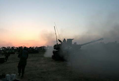 An Israeli mobile artillery unit fires shells towards the Gaza Strip. (MaanImages/Moti Milrod)