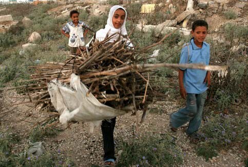 Palestinian children collecting firewood in Beit Hanoun in the northern Gaza Strip, June 29, 2006. (MaanImages/Wesam Saleh)
