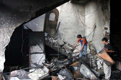Palestinians remove the wreckage after Israeli air strikes in Khan Younis in the northern Gaza Strip, June 29, 2006. (MaanImages/Hatem Omar)