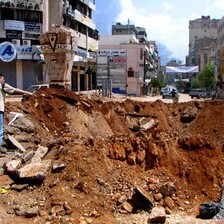 Pictured is a large hole in a major street in the municipality of Ghobeiry in Dahyeh the southern suburbs of Beirut. Major roads and highway infrastructure throughout the Ghobeiry municipality were targeted throughout the past 48 hours seriously damaging the civilian infrastructure of the area.