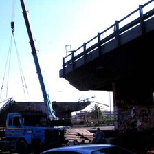 Another photo of the destroyed “Airport Bridge” in Ghobeiry area as local construction crews begin repair work the day after night-time Israeli missile strikes.