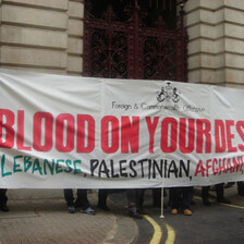 Around 10,000 people of conscience marched through central London today in fierce opposition to Israel’s mass slaughter of the Lebanese and Palestinian people and the British government’s complicity. Organised by the Palestine Solidarity Campaign, the Stop the War Coalition, and many other Muslim and Lebanese groups, the demonstrators embarked from Whitehall through the centre of the West End, past the United States Embassy and on to Hyde Park where they assembled for a rally.