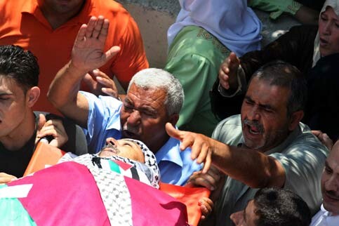 Relatives from Hableh town near the West Bank city of Qalqilia attend the funeral of Hussein Mradwi, who was shot by an Israeli settler, 7 August 2006. (MaanImages/Khaleel Reash)