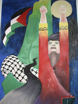 Murals painted by Palestinians line the walls cutting off Tel Rumeida from the rest of Hebron. (Anna Baltzer)