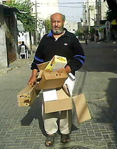 Since being cut off of work following the outbreak of the intifada in 2000 and the imposition of Israeli closures, Riyad has been collecting torn-apart carton packing material and used papers in order to save a few shekels due his inability to afford gas and electricity.