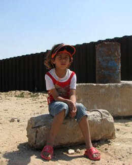The children are small enough that they can wiggle their way through the cracks of the large iron gates along the wall, where once Merkava tanks made their unwelcome entrance to battered camps here. And so they can call out to their Egyptian friends, and learn their names and new kite flying techniques.