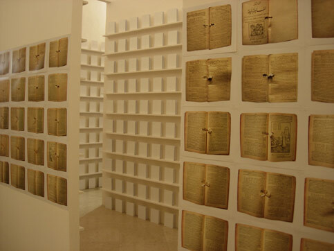 Part of the installation and performance piece by Emily Jacir at the 2006 Biennale of Sydney. Jacir’s piece featured 1,000 blank books shot by the artist with a .22 caliber pistol, mixed media and 67 c-prints.
