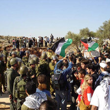 Lovers of peace, friends of freedom and justice … our partners in the struggle and in the creation of this partial victory — I bless you in the name of our Palestinian people, in the name of the residents of Bil’in, who you came to know, and who came to know you, and whose sides you stood by ever since they began their opposition to the fence and the settlement that squats on a large part of their land. You came to us without considering the consequences — the Zionist occupational government attempts to implant the deceptive and distorted idea that the Palestinians are your enemy and want to kill you. By way of this shared journey, we proved the opposite and together we demonstrated the truth — that Israelis can stand beside Palestinians and live with them in peace and security, and even struggle with them against injustice and occupation, on the fundamental basis that this occupation is an enemy of humanity.