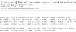 Gilead Ini’s 17 March email provides specific advice on how to pass off pro-Israel propaganda or opinion as fact meeting Wikipedia’s strict guidelines: