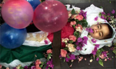 Israeli soldiers targeted a two year-old boy yesterday. Even they could not come up with an excuse for shooting him in the head. At his funeral today Fatah Youth flags flew in the breeze, the baby’s body covered in purple-pink flowers. He was carried on a stretcher along side another small boy, 9 years old, who died from two day old injuries. Kristen Ess writes from occupied Gaza. Read more about More reports from Block O in Rafah