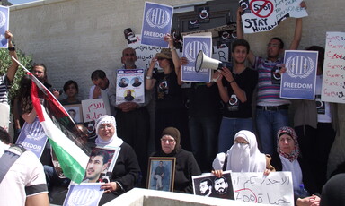At 7.30 this morning a small group of Palestinian prisoner solidarity activists in Ramallah swooped down on the United Nations compound in Ramallah. They blocked the main gate and doorway, preventing entrance to the UN building. UN employees have been turned away, sent home for the day. I went along a couple of hours later. Activists told me they intend to stay until the end of the working day at 5pm. Family members of prisoners took part in with the action, with more joining as the day went on. Read more about Palestinians shut down UN building in Ramallah to protest inaction over hunger strikers
