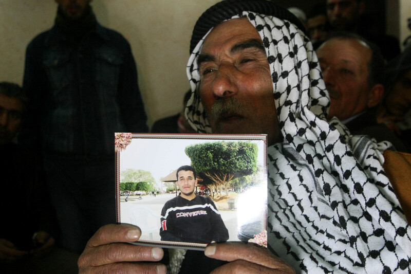 The family of Arafat Jaradat mourn in the West Bank village of Sair.